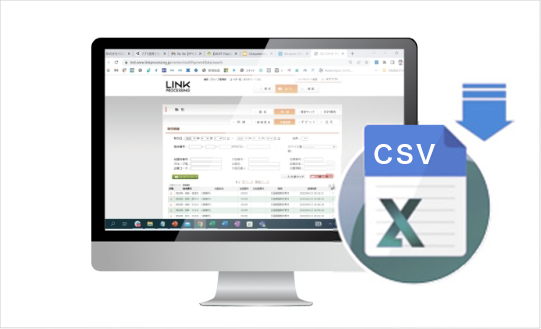 Web管理画面で取引結果を照会いただけます。また、お客様情報および取引情報をCSVデータ形式でダウンロードできます。CSVデータは収納代行会社への請求データ作成にご利用いただけます。